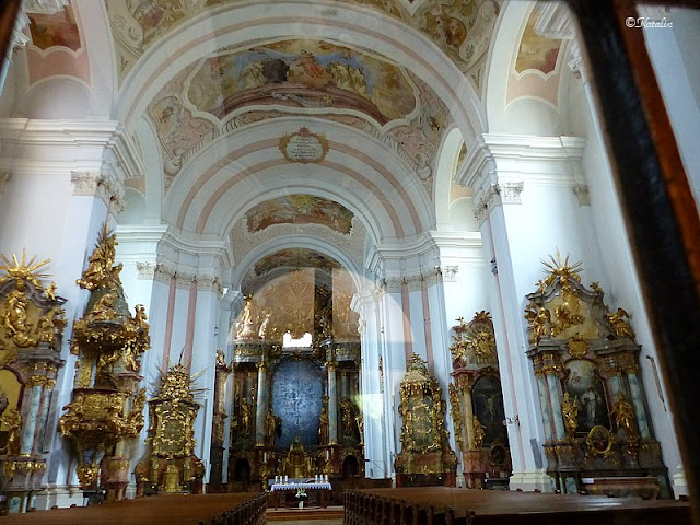 | A gazdagon díszített templombelső. Bemenni nem tudtunk, csak üvegajtón keresztül tudtunk fényképezni.... |
